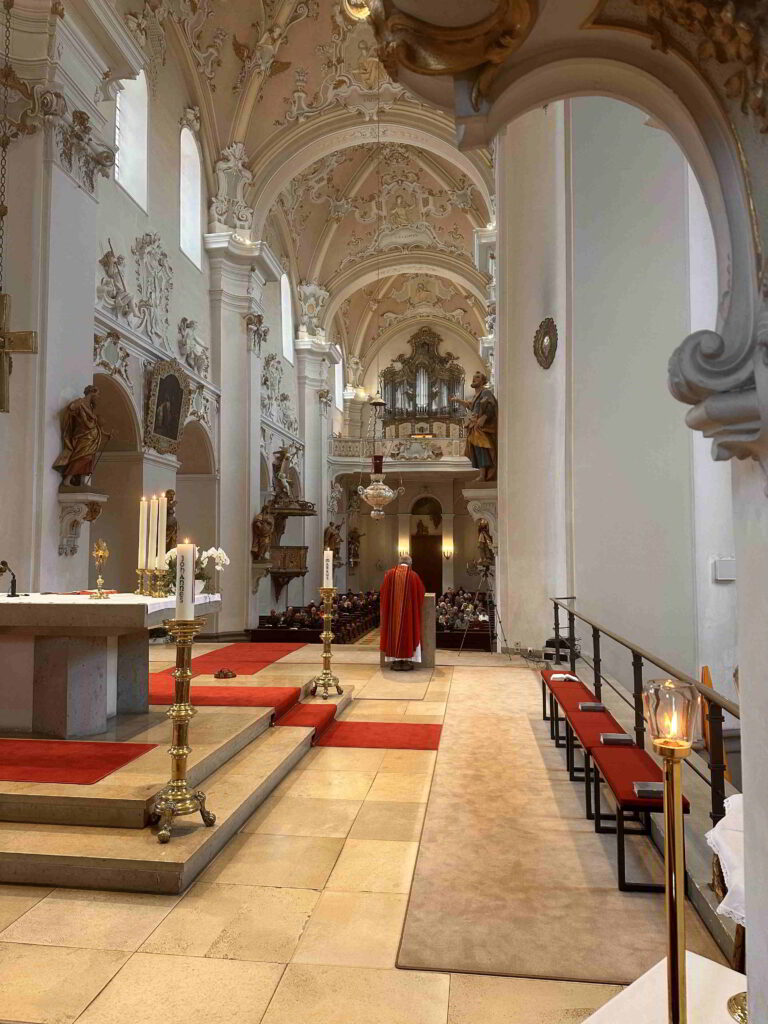 Am Mittwoch 08.02.2023 fand das erste Pontifikalamt mit Bischof Dr. Gebhardt Fürst zum Gedenktag des seligen Pater Philipp Jeningen in der Basilika statt. Konzelebranten waren Pfr. Sven van Meegen, Pater Martin Leitgöb und Prälat Werner Redies. Der Gottesdienst wurde von der Action Spurensuche mitgestaltet. Musikalisch umrahmten der Stiftschor und die Stiftsbläser unter der Leitung von Regionalkantor Benedikt Nuding sowie Peter Schleicher (Orgel) den Festgottesdienst.