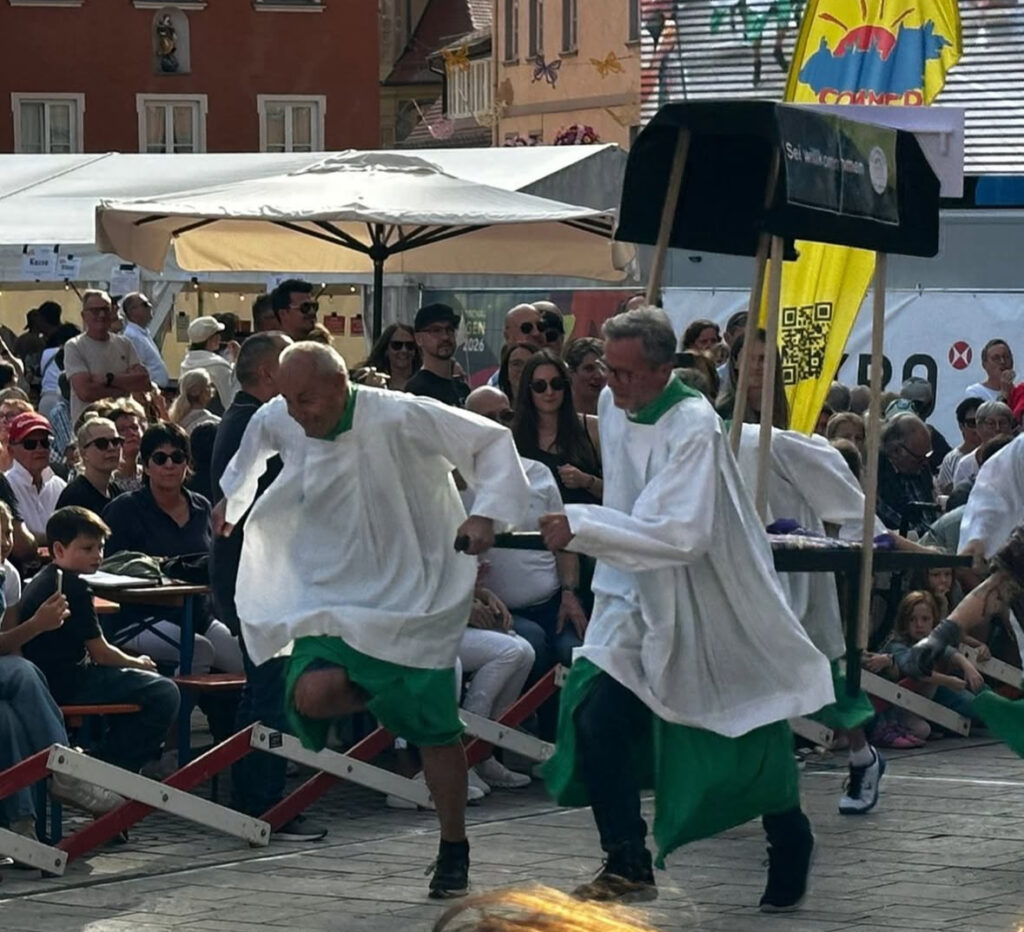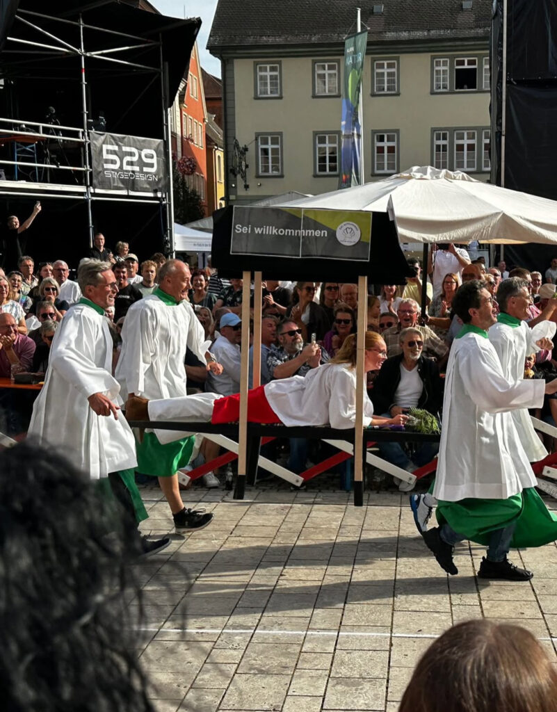 Ein ereignisreiches und gesegnetes Wochenende liegt hinter der Katholischen Gesamtkirchengemeinde Ellwangen. Im Rahmen des Stadtfestes durften wir die Freude des Glaubens in zwei festlichen ökumenischen Gottesdiensten miteinander teilen und so ein starkes Zeichen der Verbundenheit setzen. Pfarrer van Meegen begeisterte zudem beim SWR 1 Pfännle mit seinen Kochkünsten auf der Bühne, während die Männer der Kirchengemeinde St. Wolfgang beim Ellwanger Sänftenrennen ihre Schnelligkeit unter Beweis stellten und mit einem hervorragenden vierten Platz geehrt wurden – gekrönt durch einen großen Laib Käse, gestiftet von den Eheleuten Strehle. Auch die Kirchengemeinde St. Vitus trug zum Gelingen bei, indem sie mit Unterstützung der Gesamtkirchengemeinde einen erfolgreichen Kuchenverkauf organisierte, dessen Erlös der Renovierung des Hauses der Katholischen Kirche zugutekommt. Unser aufrichtiger Dank gilt allen, die mit Kuchenspenden, helfenden Händen und großem Engagement dieses Wochenende bereichert haben. So wurde erneut sichtbar, welche Kraft im Miteinander liegt und was wir als Katholische Gesamtkirchengemeinde Ellwangen gemeinsam auf die Beine stellen können.