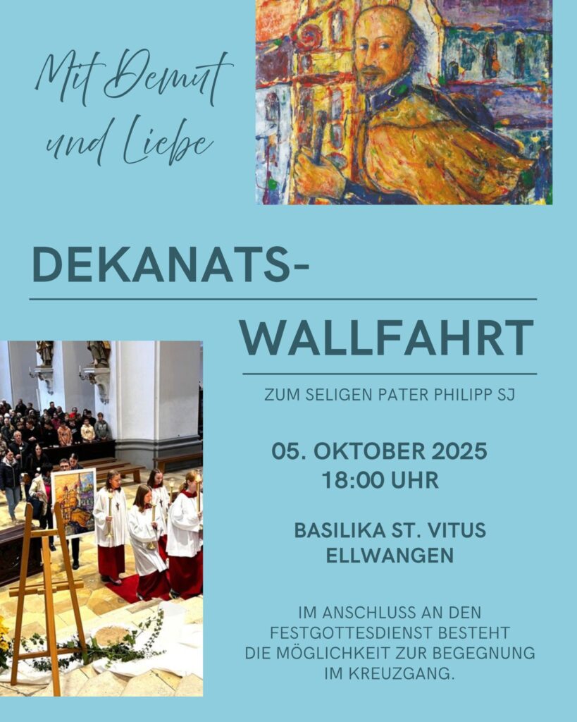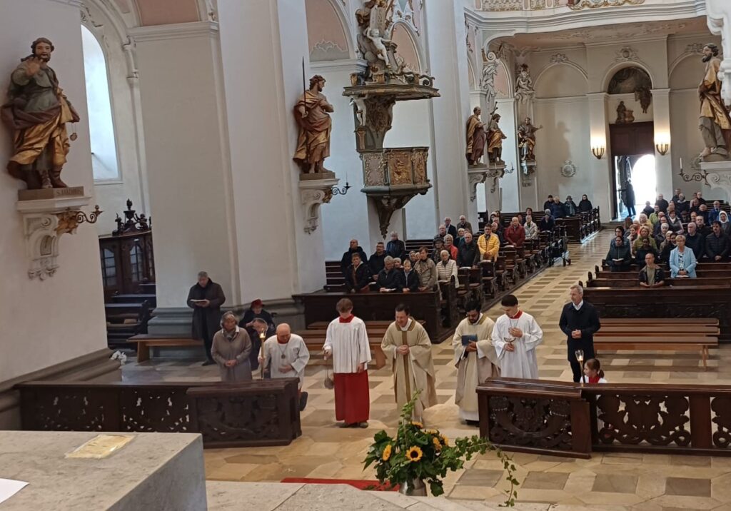 Mit vielen Hoffnungsgedanken für eine „Kirche der Zukunft“ und in wunderbarer Atmosphäre, konnte die Dekanatswallfahrt in diesem Jahr gefeiert werden. Die Wallfahrt zum Grab von Pater Philipp Jeningen in der Basilika St. Vitus hat viele Christinnen und Christen aus dem ganzen Dekanat Ostalb zusammengerufen. In der gemeinsam gefeierten Liturgie, mit den begeisternden, Hoffnung gebenden Worten des Hauptzelebranten Prof. Dr. Sven van Meegen und einer wunderbaren, musikalischen Begleitung, wurde der Wallfahrtsgottesdienst zu einem Erlebnis.