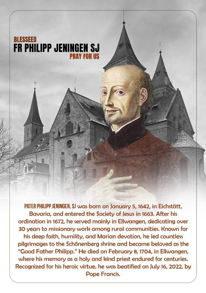 Nicht durch große Reden, sondern durch sein Handeln habe Pater Philipp bezeugt, „dass die Nachfolge Jesu unser Leben verändern kann“, sagte der Pfarrer. Das Wunder, dass in Pater Philipps Nähe viele gesund werden an Leib und Seele, „dass Menschen aufatmen können, dass sie anfangen, neu zu glauben und zu leben – diese Wunder sind geschehen nicht nur durch Worte, sondern vor allem durch die Taten von Pater Philipp Jeningen“, so van Meegen. „Tausende Kilometer ist er hier durch die ganze Gegend durch vier Bistümer gelaufen, um Menschen die Sakramente zu spenden, um sie in der Not zu begleiten und ihnen beizustehen. Aber eben nicht durch sein ‚Mundwerk‘ hat er die Menschen für das Evangelium begeistert, sondern durch seine zupackende, stützende ‚Handarbeit‘.“