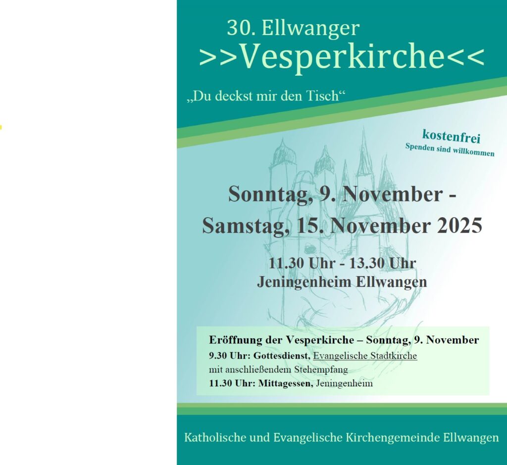 Ellwanger Vesperkirche: Sonntag, 9. November bis Samstag, 15. November 2025